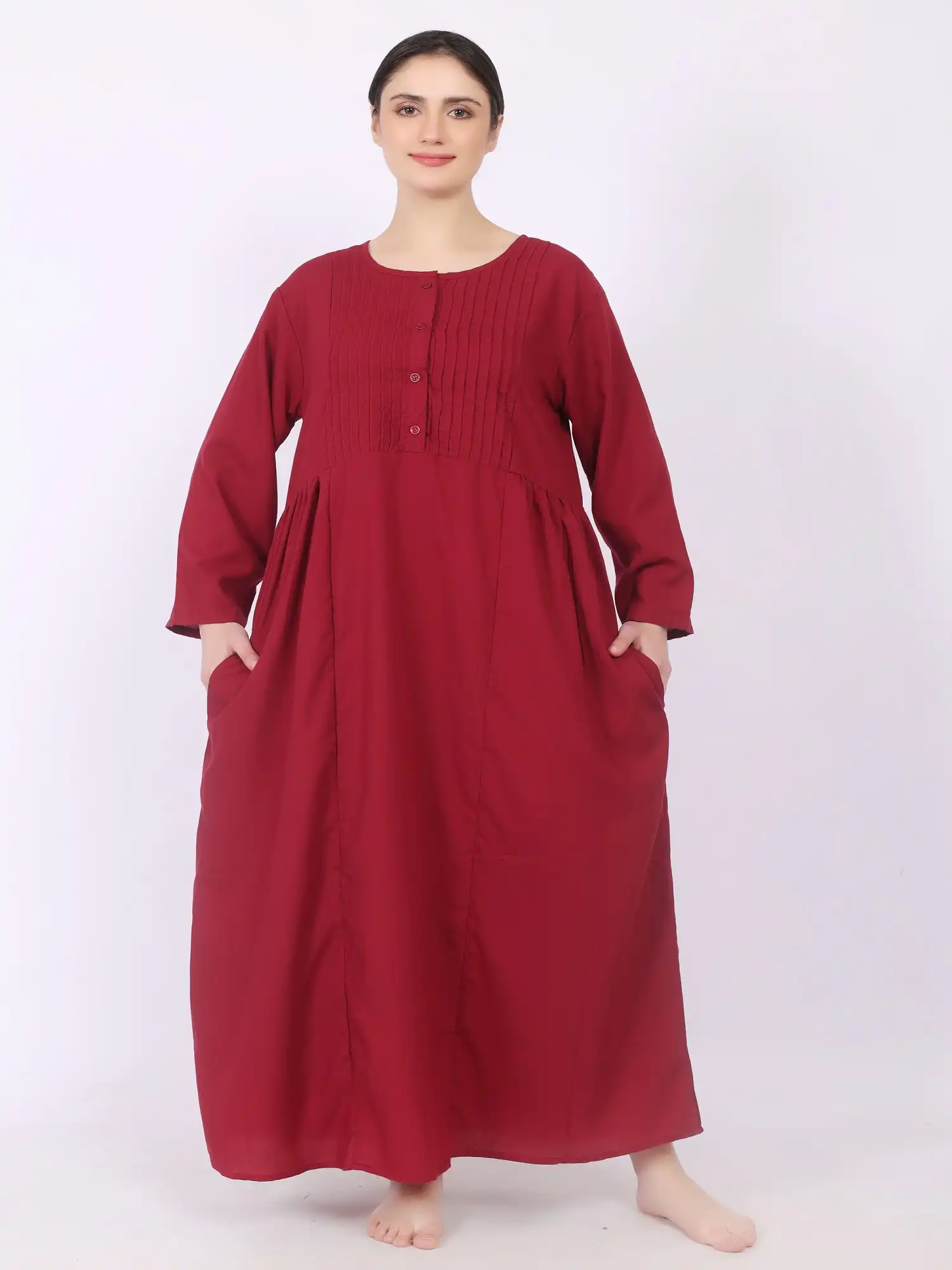 Sajaniya Osho Maroon Pintec Meditation Gown wear in occasion like casual , festive and daily wear and also use for Meditation in osho ashram. Sajaniya Osho Meditation robes make a soft and heavy durability fabric with high quality embellishment . Its feel is soft and smooth.